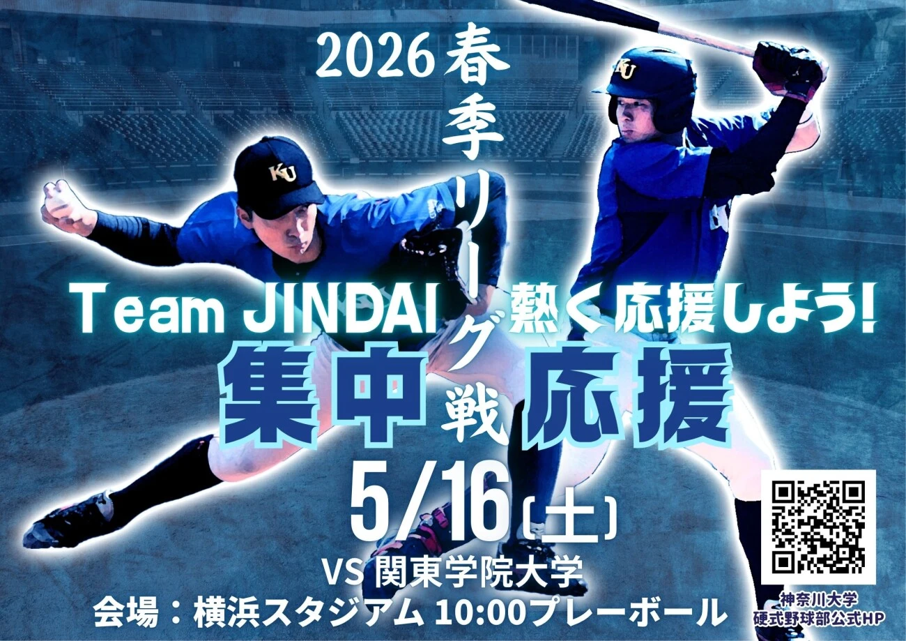 2026年5月16日(土)、横浜スタジアムで行われる本学硬式野球部の神奈川大学野球連盟春季1部リーグの試合において、学生・教職員が無料で観戦できる「集中応援」(特別応援企画)を実施します。