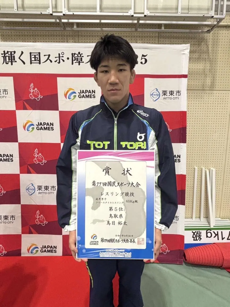 「国体での入賞は高校1年生以来で、学生最後の年に5位ではありますが入賞して微力ながら鳥取県に貢献できてよかったと思っています。